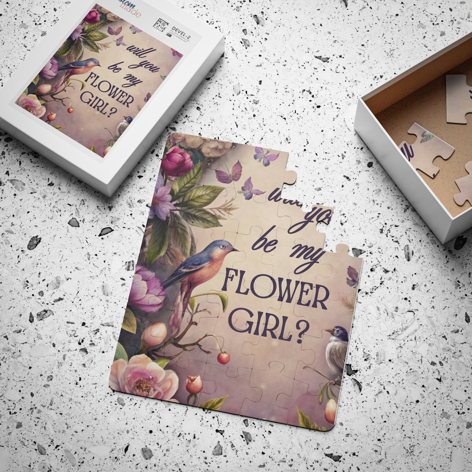 Flower Girl Proposal Kids Puzzle — "Will you be my Flower Girl?" Featuring a beautiful floral and bird design 30-Piece Keepsake