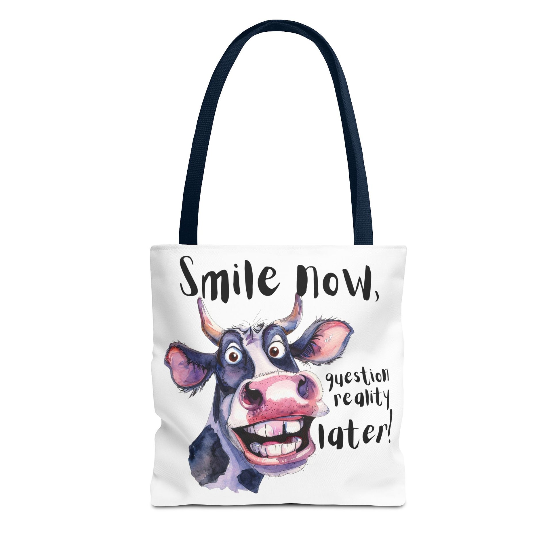 Funny Cow Tote Bag - 'Smile Now, Question Reality Later!' - Great Gift Idea, Mother's Day Gift