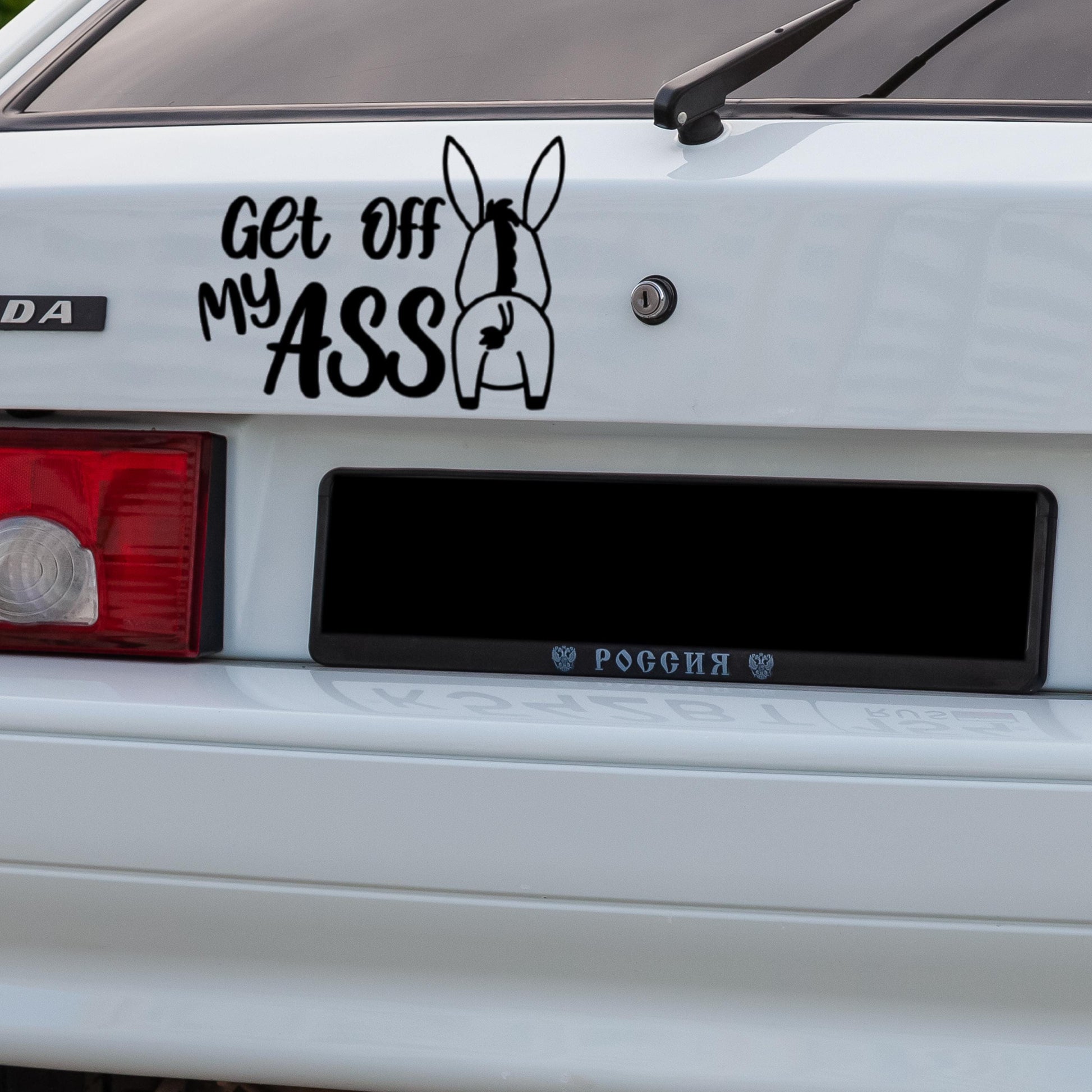 Get off my ASS with donkey window or bumper vinyl Decal | Funny sarcastic way to stop tailgaters