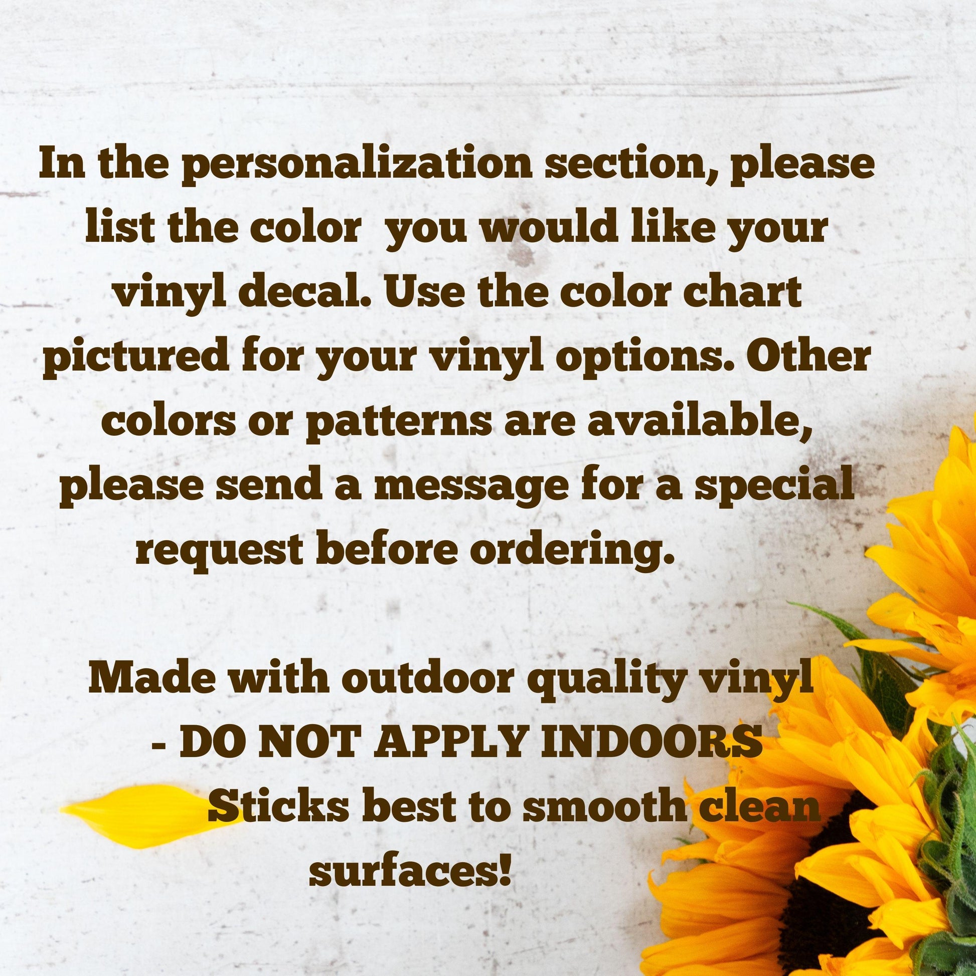 Made with outdoor quality vinyl - DO NOT APPLY INDOORS