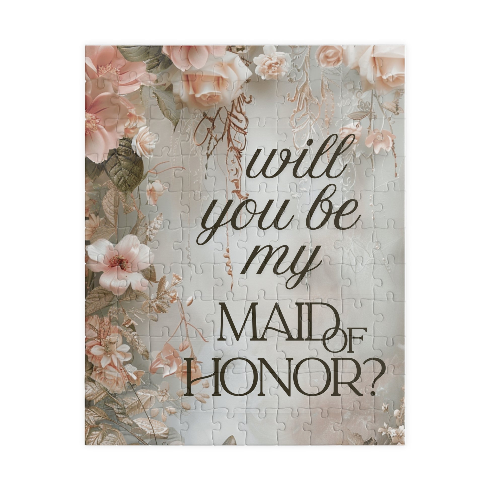 Designed with soft romantic florals and elegant script, this puzzle is a meaningful way to invite your best friend, sister, or family member into your bridal party.
