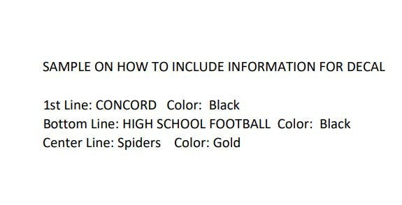 BOTTOM LINE: Words to Use (e.g. HIGH SCHOOL FOOTBALL) – Color Choice (e.g. Black)
