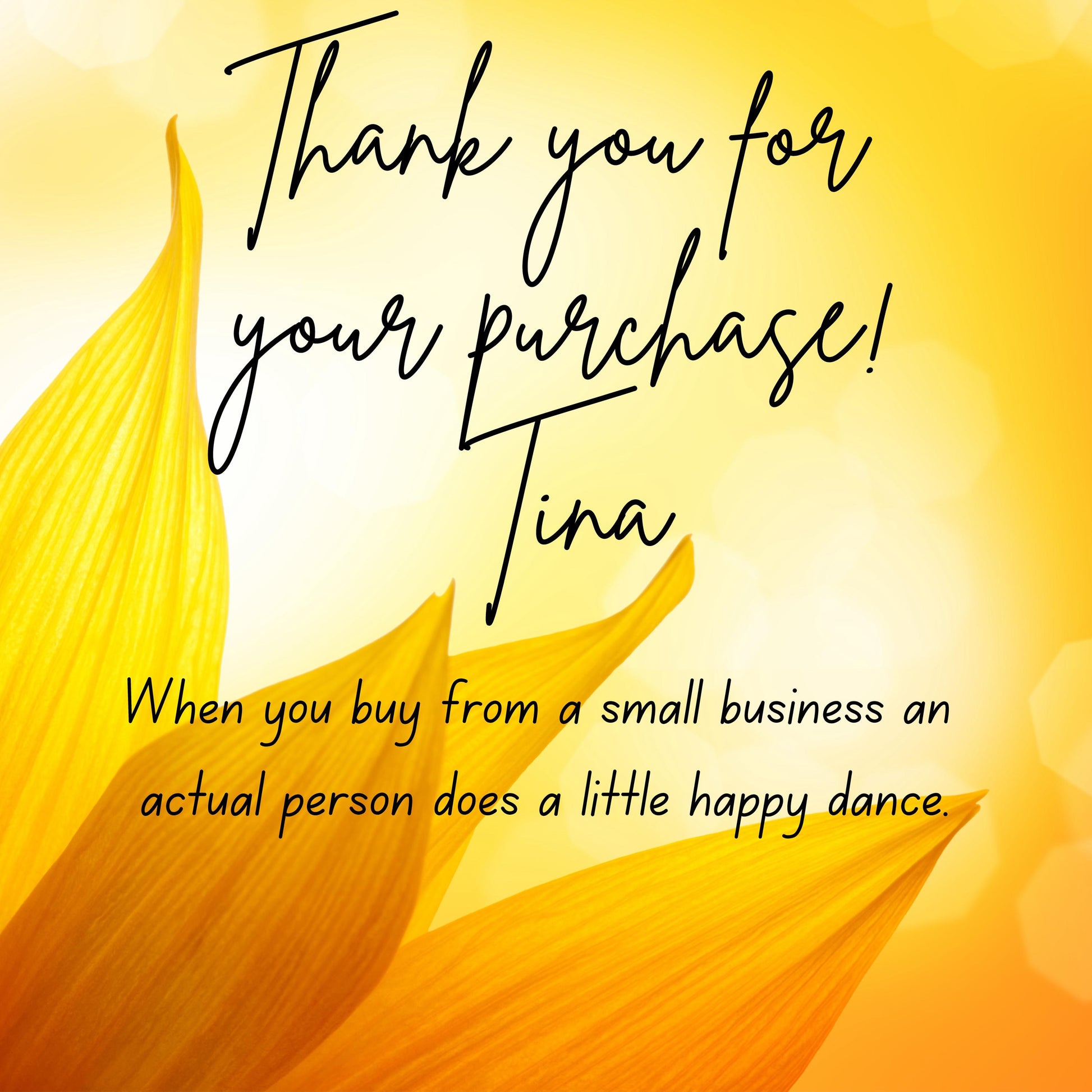 “When you buy from a small business, an actual person does a happy dance!”